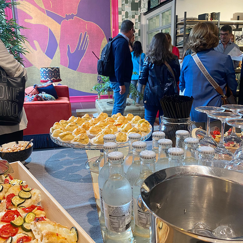Per le realtà aziendali medio-piccole, si suggerisce la soluzione dell’aperitivo, allestendo un ricco buffet, dove i presenti, dopo essersi serviti in autonomia, sono liberi di muoversi negli spazi e di interagire con più persone.